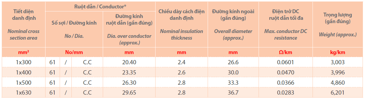 - Nhiệt độ ruột dẫn lớn nhất: 900C trong vận hành bình thường, 2500C ngắn mạch tối đa trong 5s