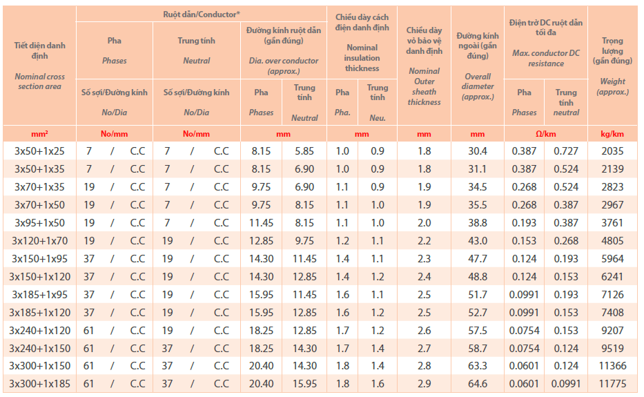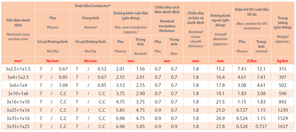 - Điện áp định mức (Uo/U): 0.6/1kV