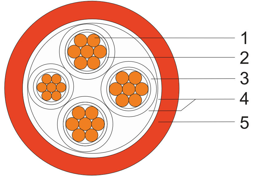 Cáp chống cháy, ít khói không halogen, 4 lõi, trung tính giảm, Cách điện XLPE, không giáp, có vỏ bọc