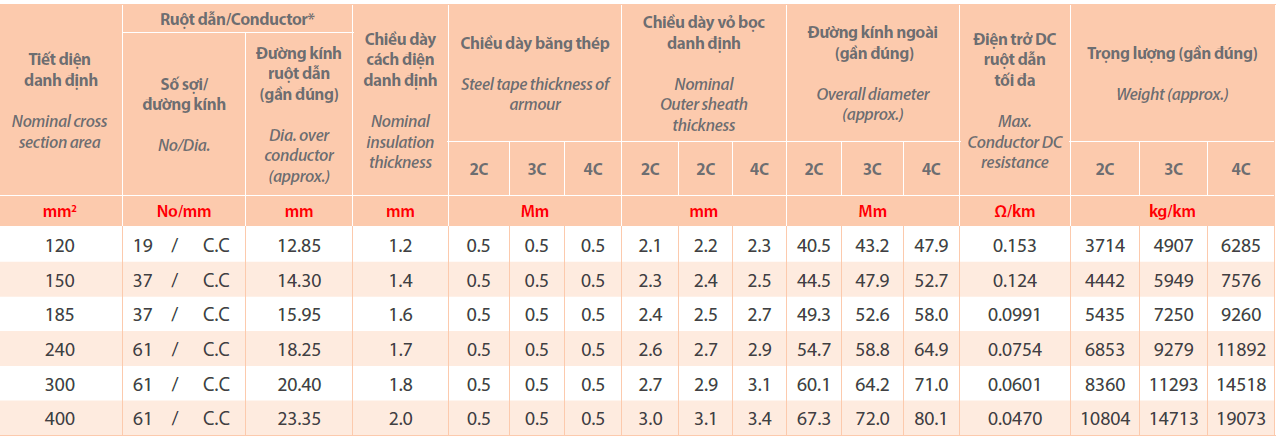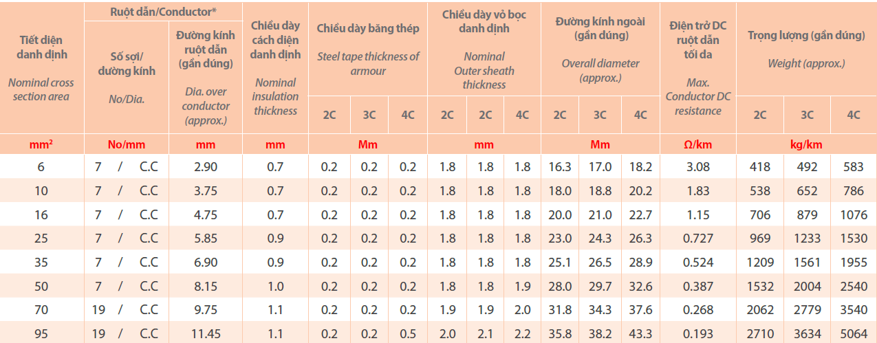 Cấu trúc: Cu/XLPE/LSZH/DSTA/LSZH