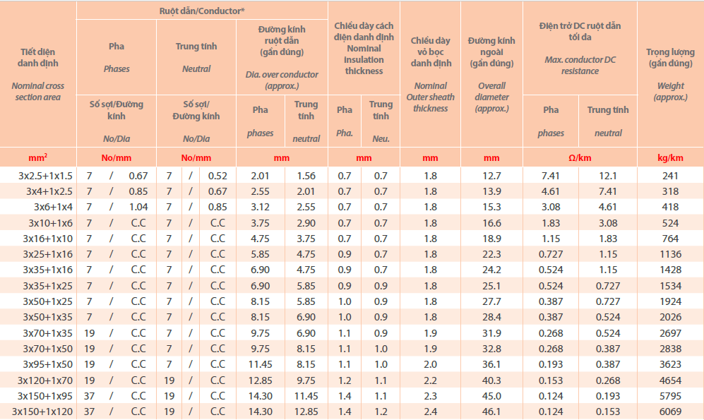 - Điện áp định mức (Uo/U): 0.6/1kV