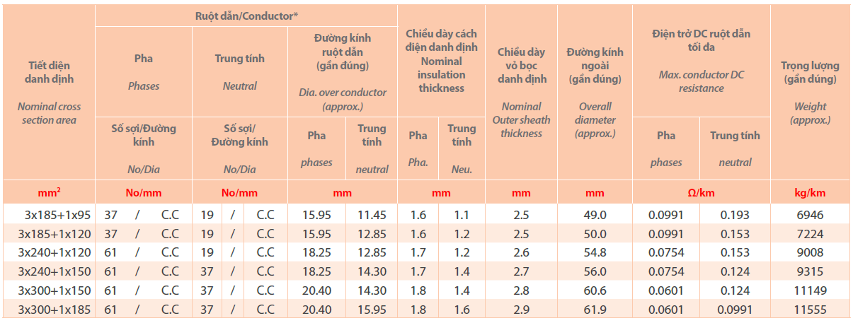 - Cách điện: XLPE