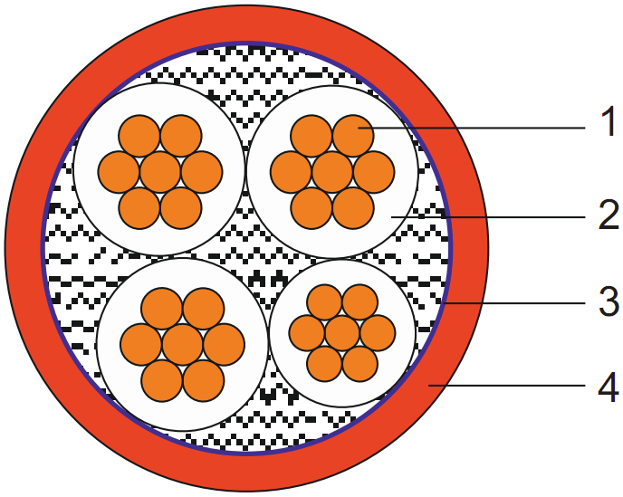 Cáp chậm bắt lửa, 4 lõi, trung tính giảm, cách điện XLPE, không giáp, có vỏ bọc
