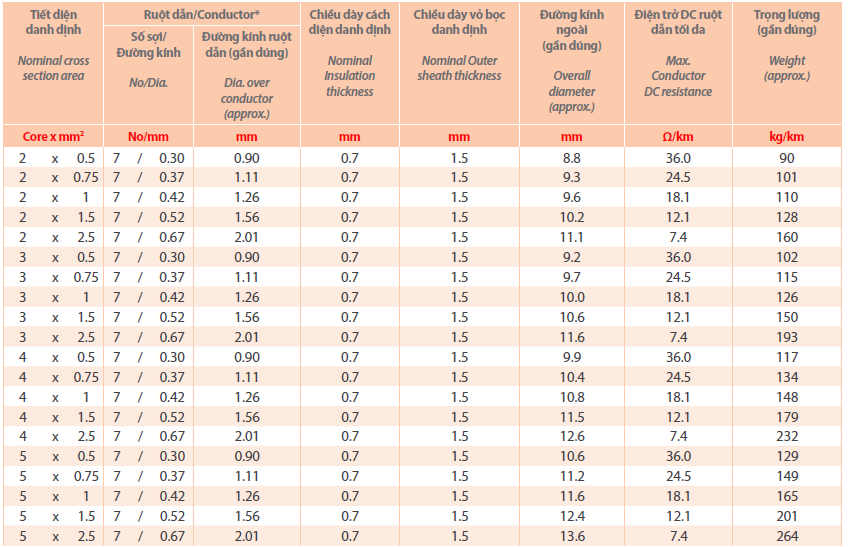 - Điện áp định mức (Uo/U): 0.6/1kV