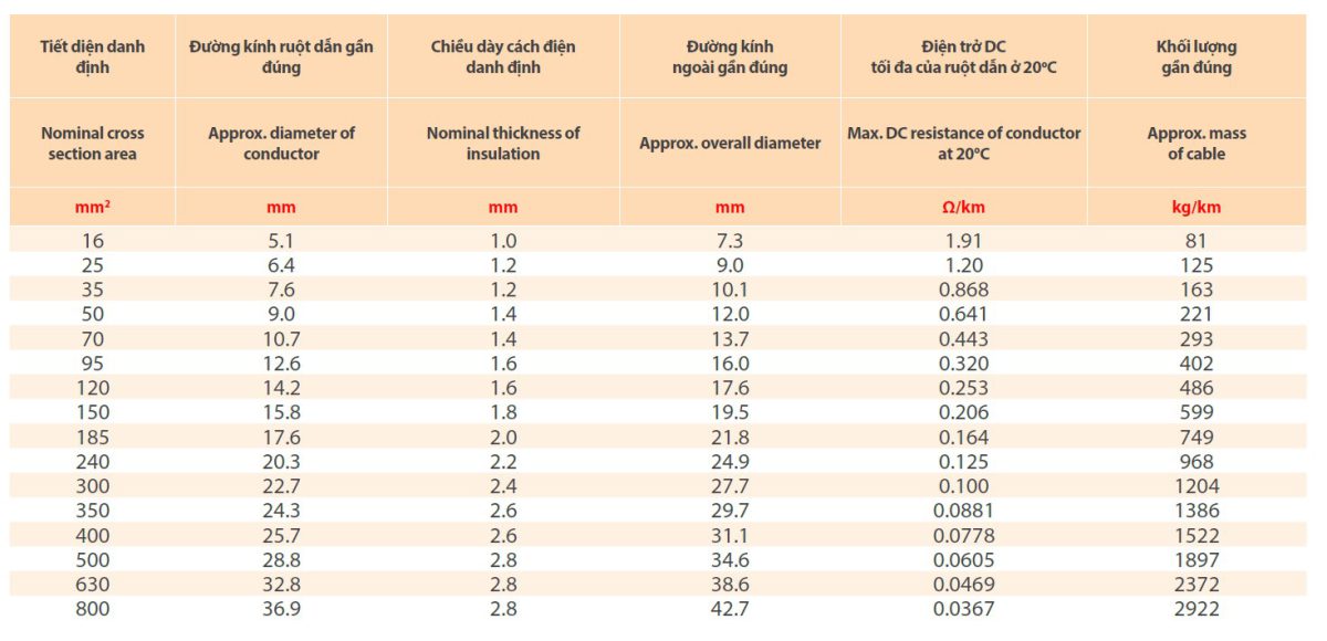 - Điện áp định mức (Uo/U): 0.6/1kV