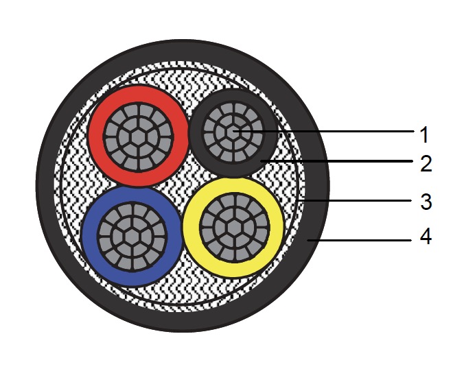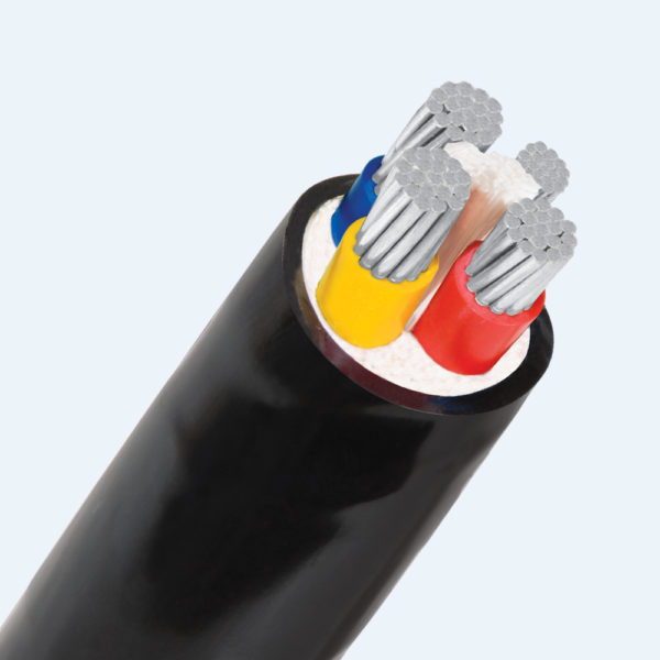 Cáp điện lực, 4 lõi, trung tính giảm, ruột nhôm nén chặt, cách điện PVC, không giáp, có vỏ bọc, 0.6/1kV