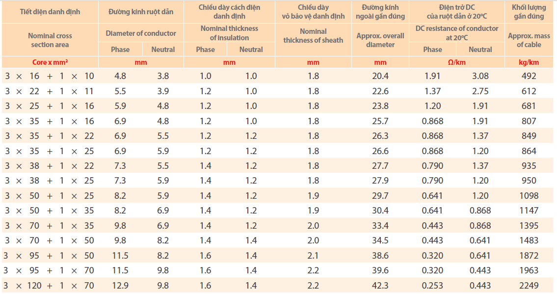 - Điện áp định mức (Uo/U): 0.6/1kV