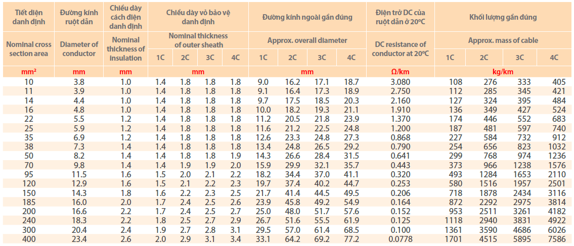 - Điện áp định mức (Uo/U): 0.6/1kV