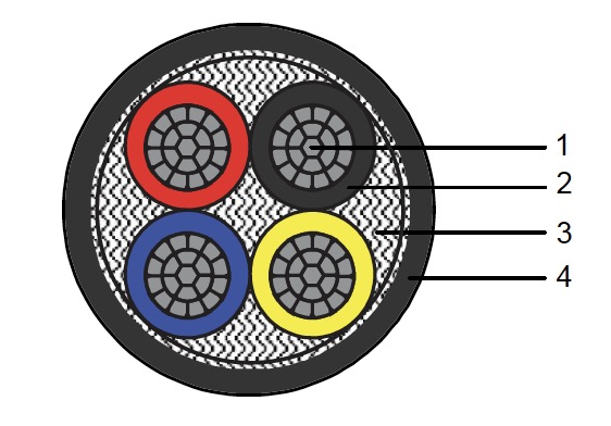 Cáp điện lực, 1, 2, 3, 4 lõi, ruột nhôm nén chặt, cách điện PVC, không giáp, có vỏ bọc, 0.6/1kV