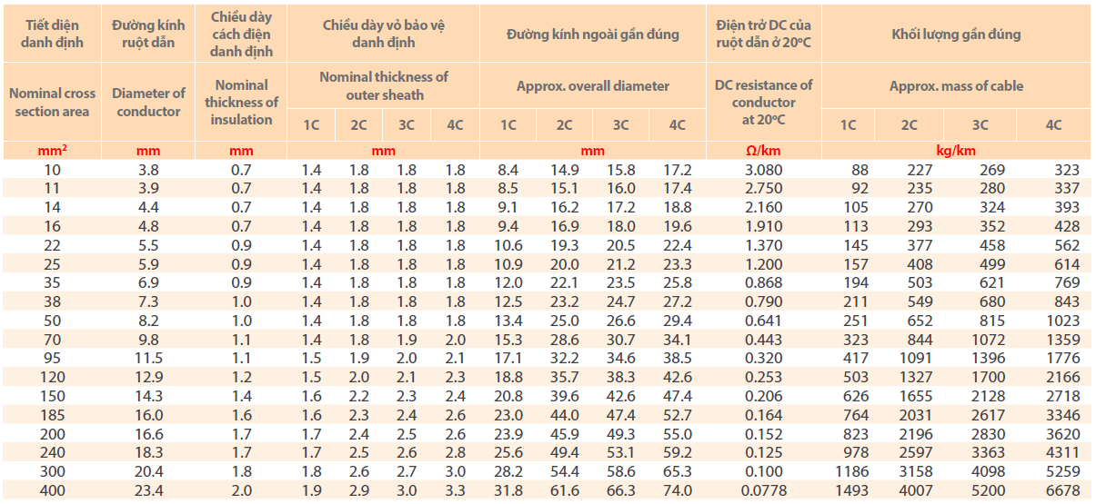 - Điện áp định mức (Uo/U): 0.6/1kV