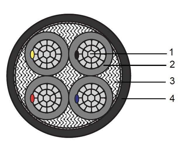Cáp điện lực, 1, 2, 3, 4 lõi, ruột nhôm nén chặt, cách điện XLPE, không giáp, có vỏ bọc