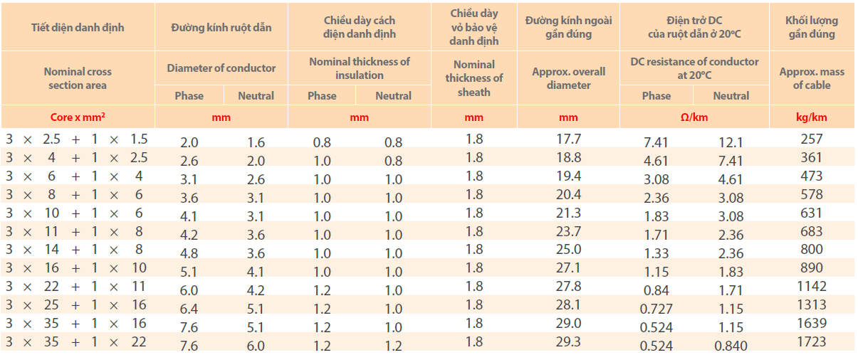 - Điện áp định mức (Uo/U): 0.6/1kV