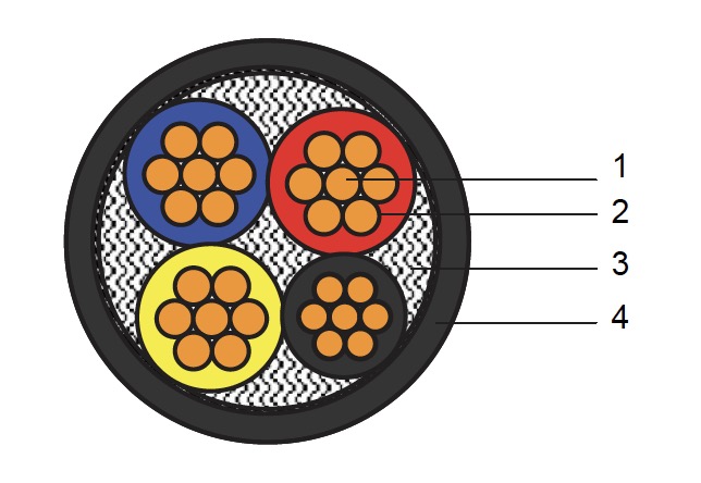 Cáp điện lực, 4 lõi, trung tính giảm, ruột đồng, cách điện PVC, không giáp, có vỏ bọc, 0.6/1kV