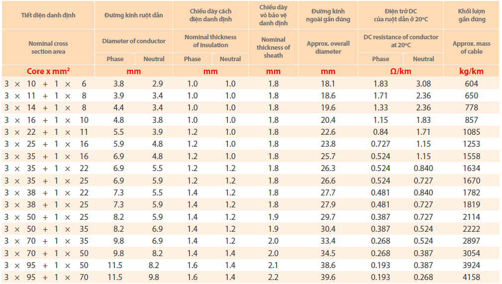 - Điện áp định mức (Uo/U): 0.6/1kV