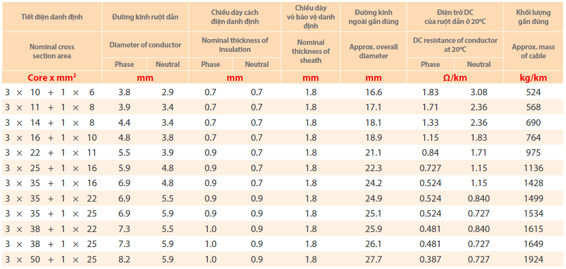 - Điện áp định mức (Uo/U): 0.6/1kV