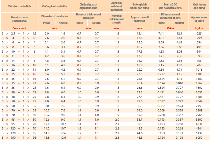 - Điện áp định mức (Uo/U): 0.6/1kV