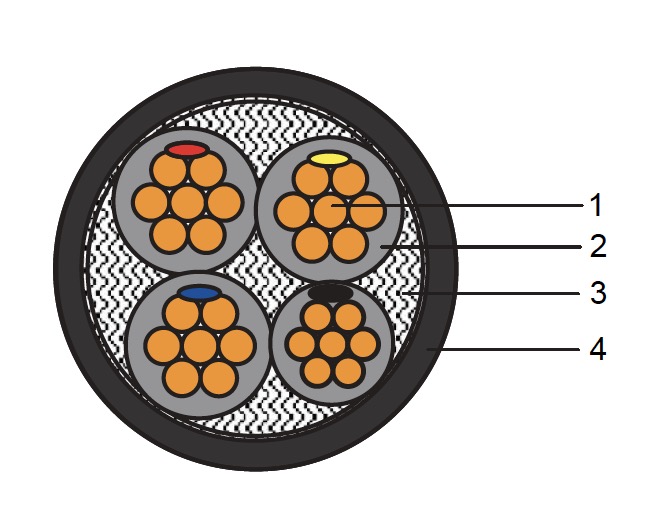 Cáp điện lực, 4 lõi, trung tính giảm, ruột đồng, cách điện XLPE, không giáp, có vỏ bọc