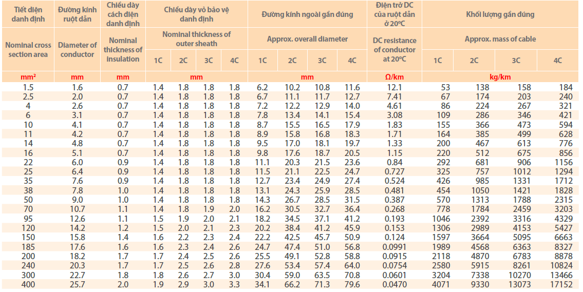 Cấu trúc: Cu/XLPE/PVC
