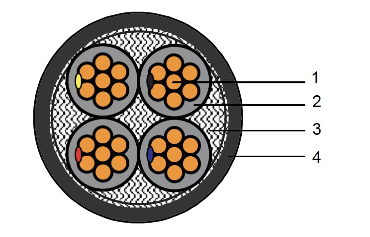 Cáp điện lực, 1, 2, 3, 4 lõi, ruột đồng, cách điện XLPE, không giáp, có vỏ bọc, 0.6/1kV
