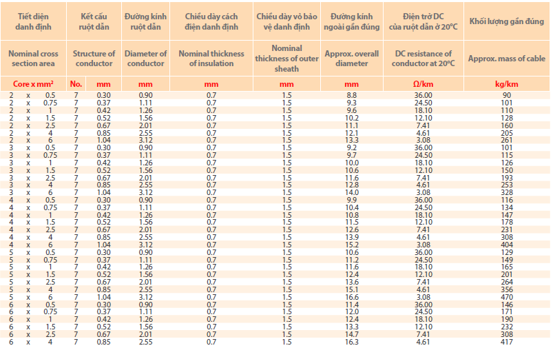 Cấu trúc: Cu/XLPE//CTS/PVC
