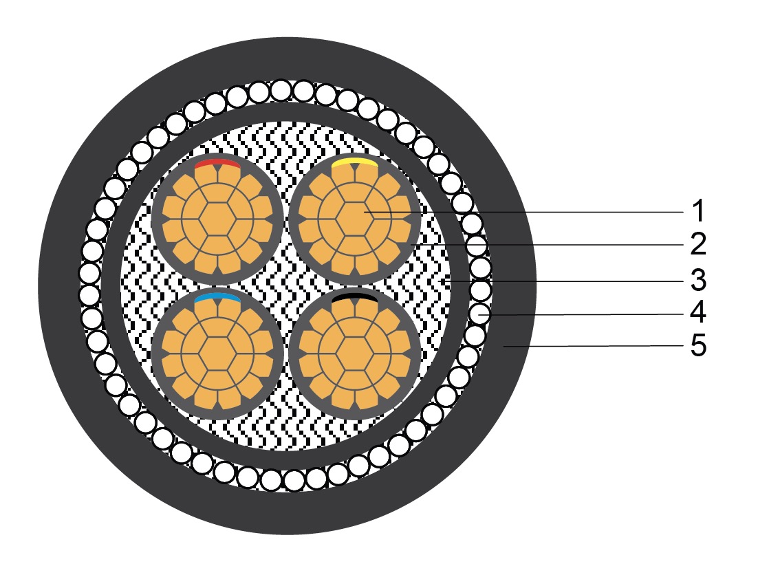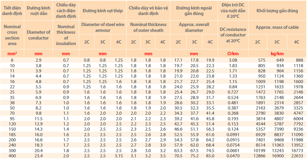 Cấu trúc: Cu/XLPE/PVC/SWA/PVC