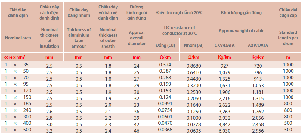 Cáp điện lực, 1 lõi, ruột đồng hoặc nhôm, có giáp (2 dải băng nhôm), có vỏ bọc