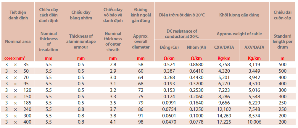 - Tiêu chuẩn: IEC 60502-2, TCVN 5935