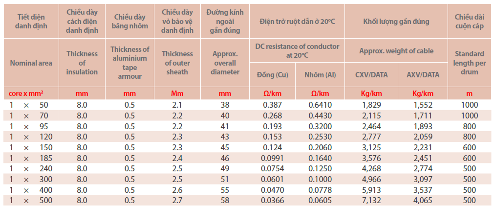 Cáp điện lực, 1 lõi, ruột đồng hoặc nhôm, có giáp (2 dải băng nhôm), có vỏ bọc