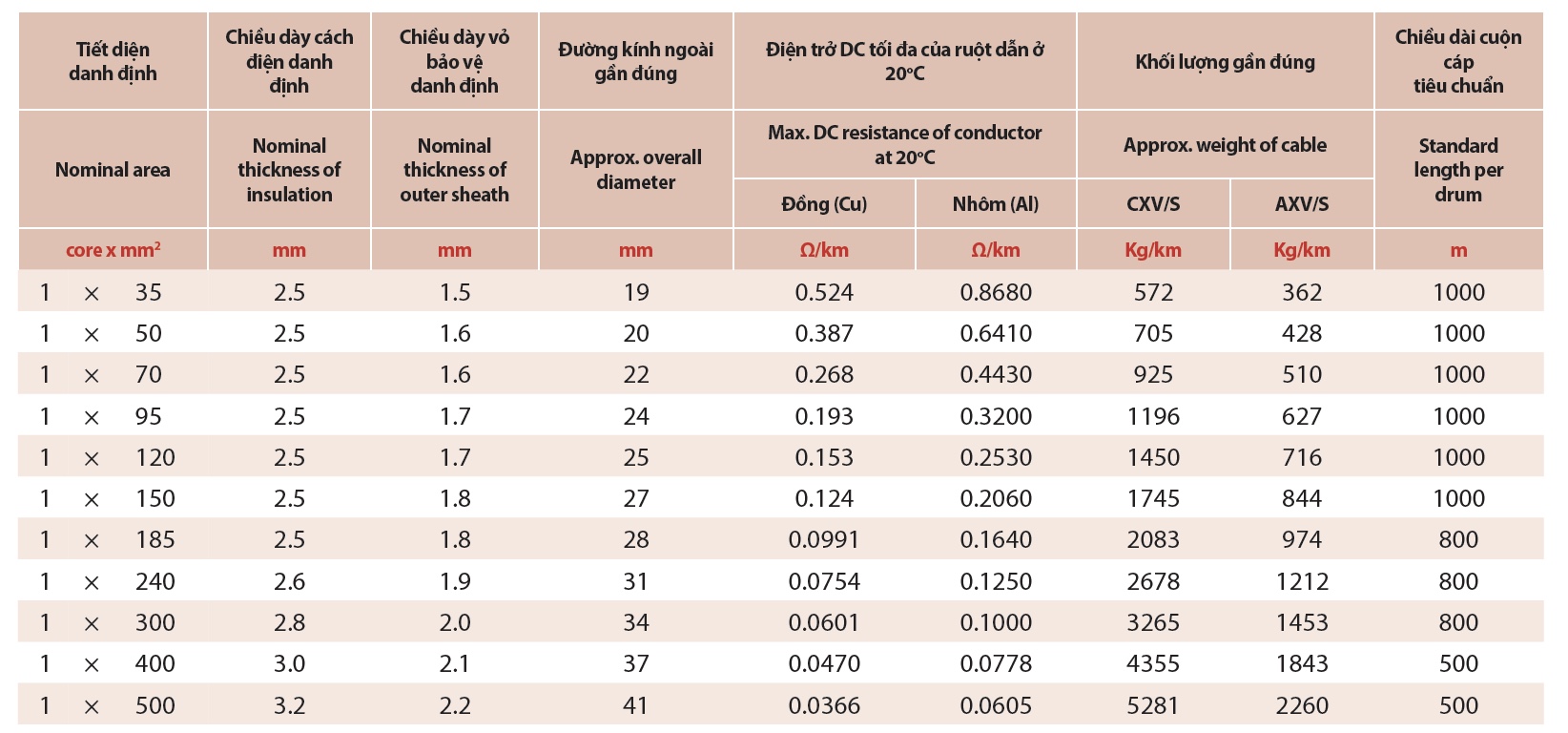 Cấu trúc: Cu(Al)/XLPE/CTS/PVC