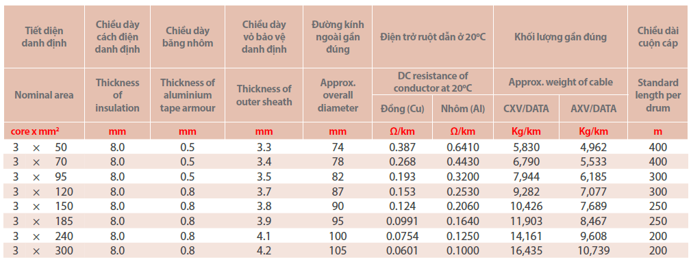 Cấu trúc: Cu(Al)/XLPE/PVC/SWA/PVC