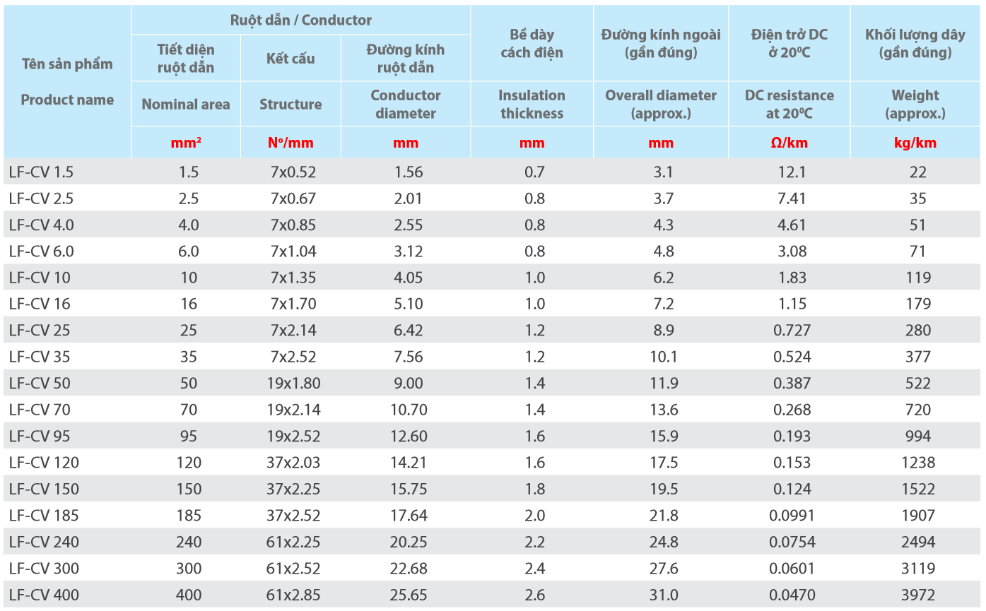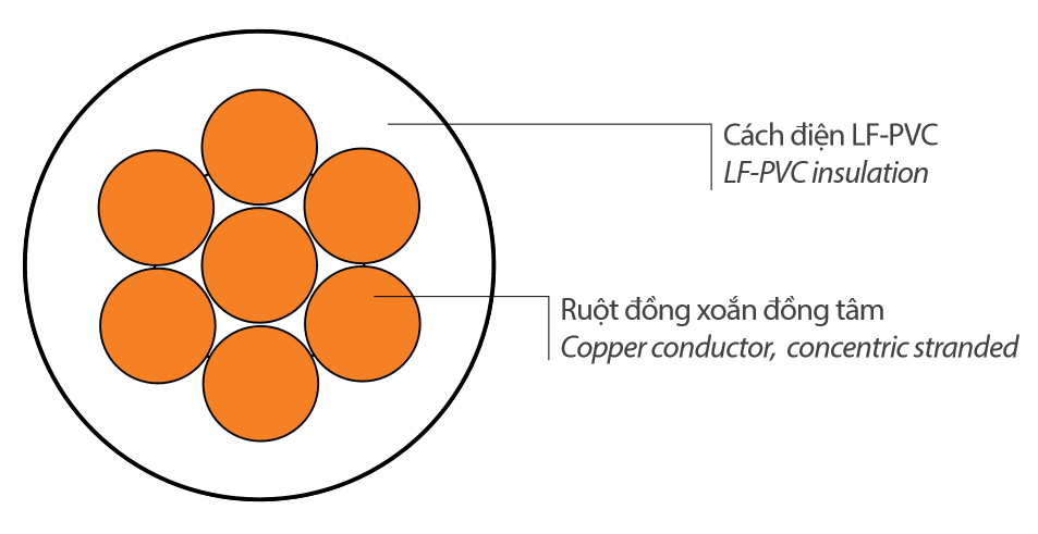 Cách điện: LF-PVC (Lead free-PVC), thân thiện với môi trường, phù hợp RoHS