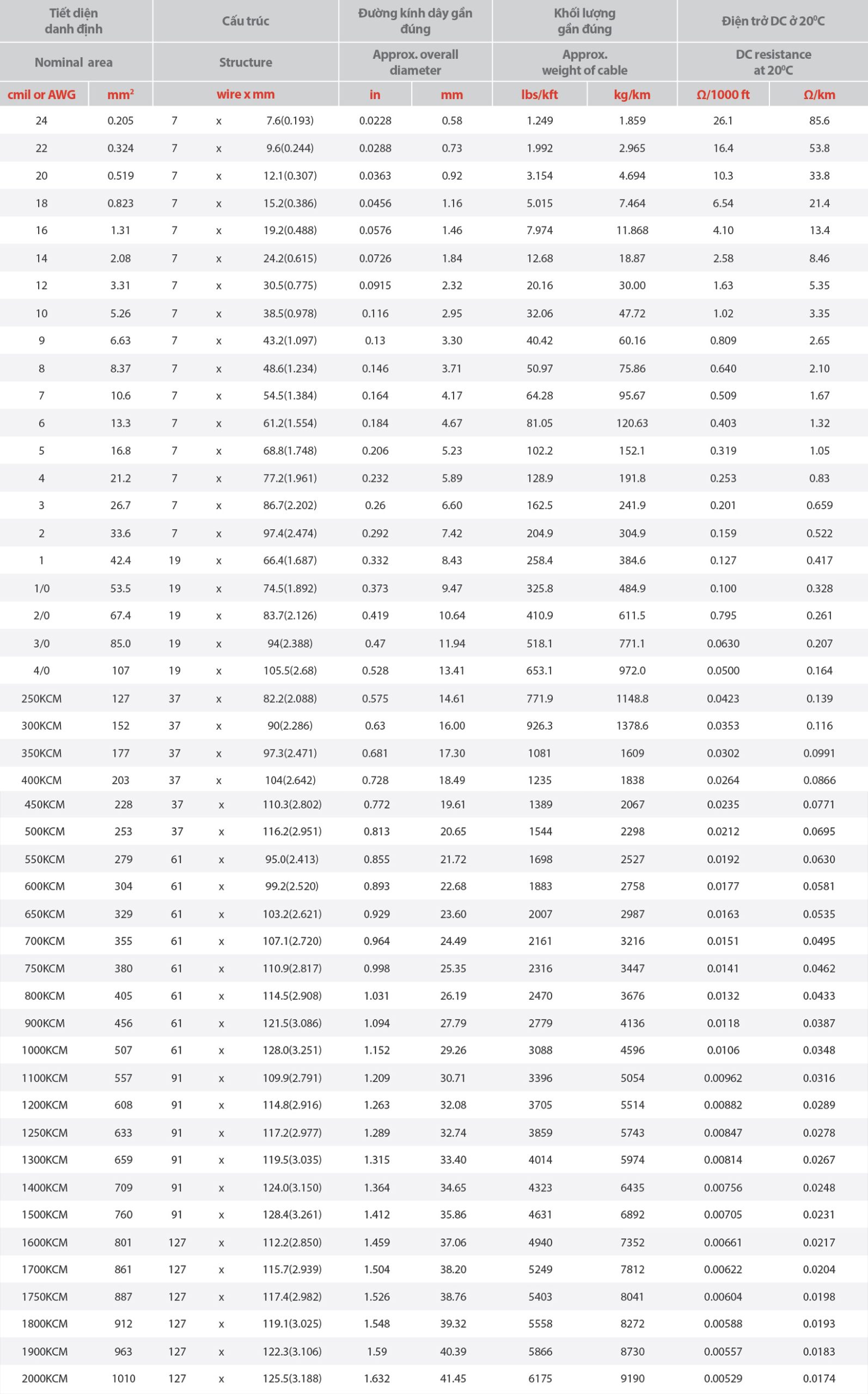 Cấu trúc: Sợi đồng xoắn đồng tâm, class B