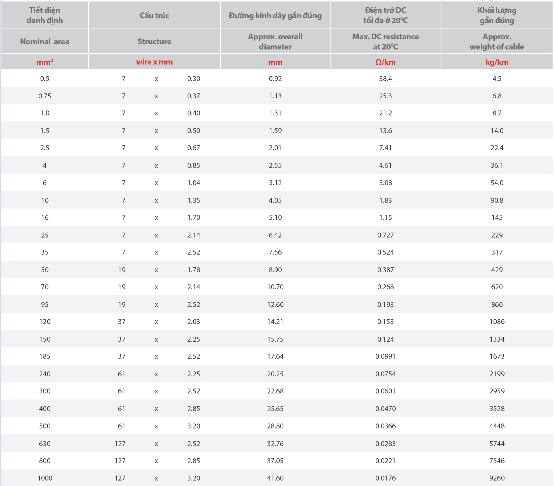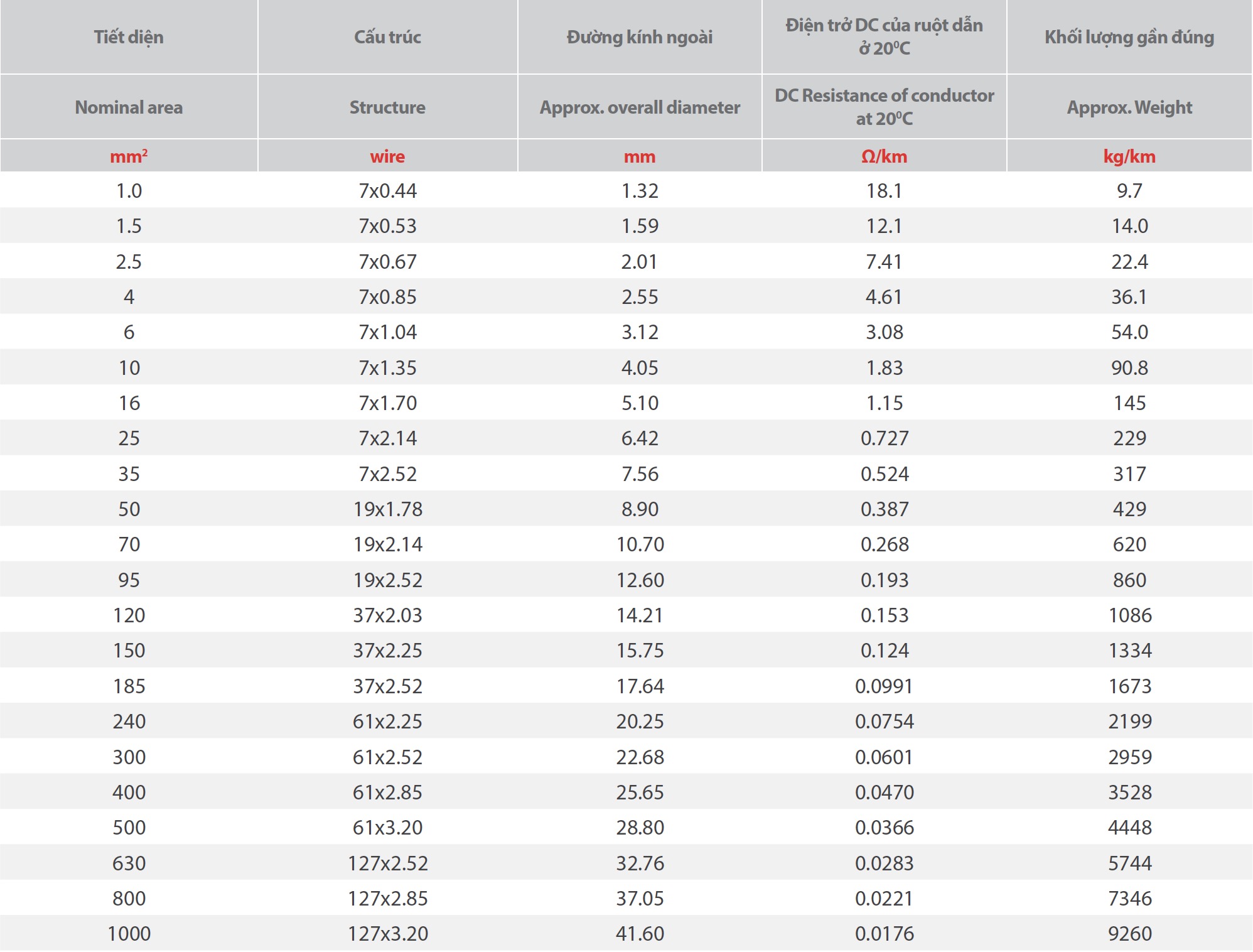 Tiêu chuẩn: BS 6360, IEC 60228, AS/NZS 1125