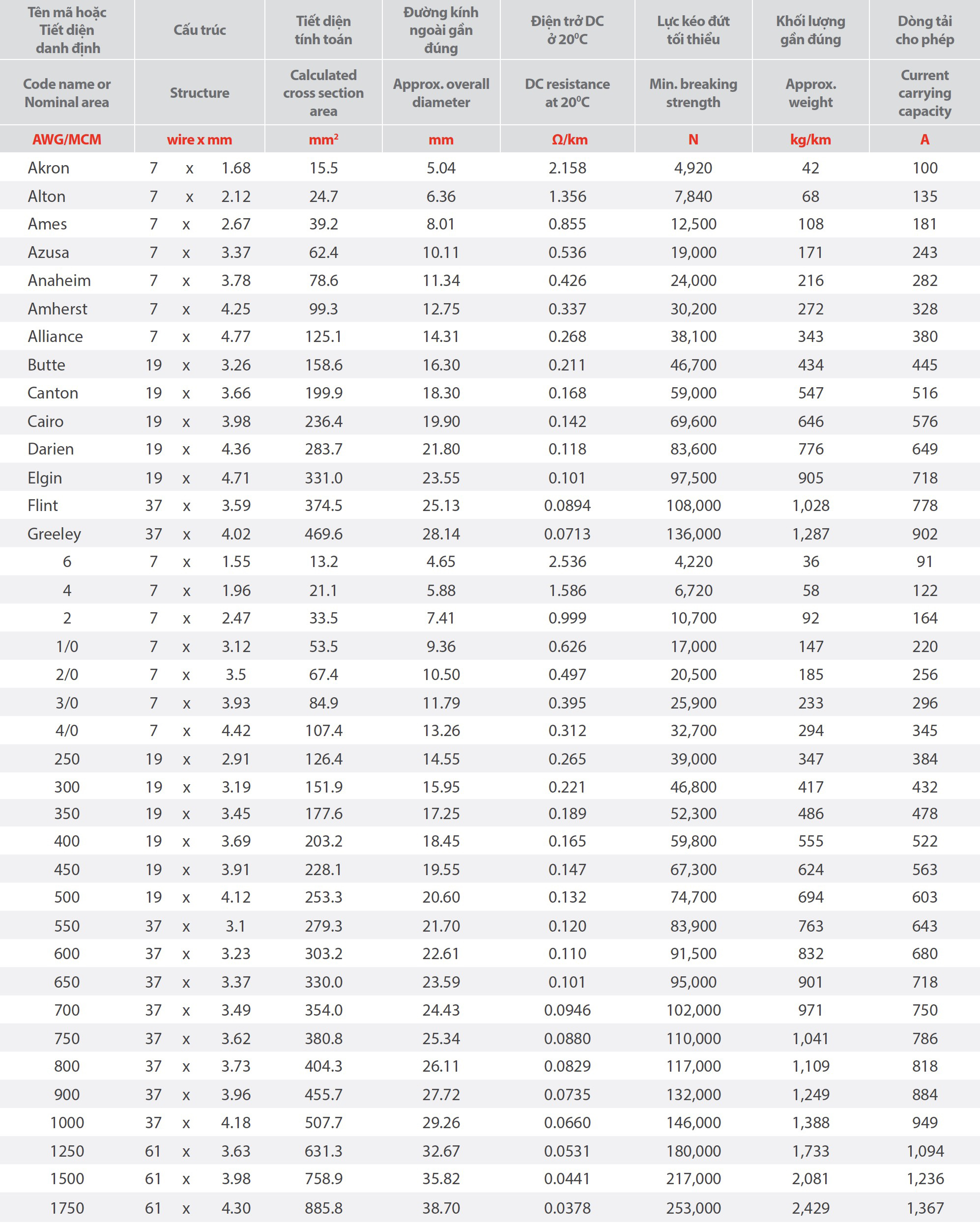 Cấu trúc: Gồm các sợi nhôm hợp kim, xoắn đồng tâm