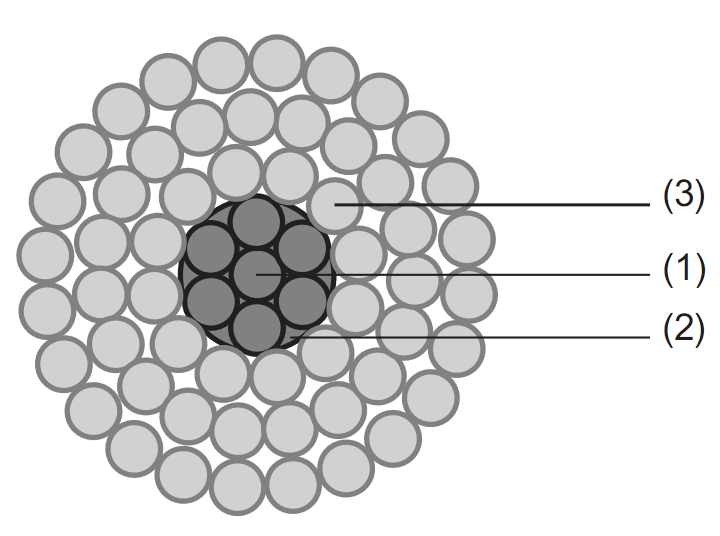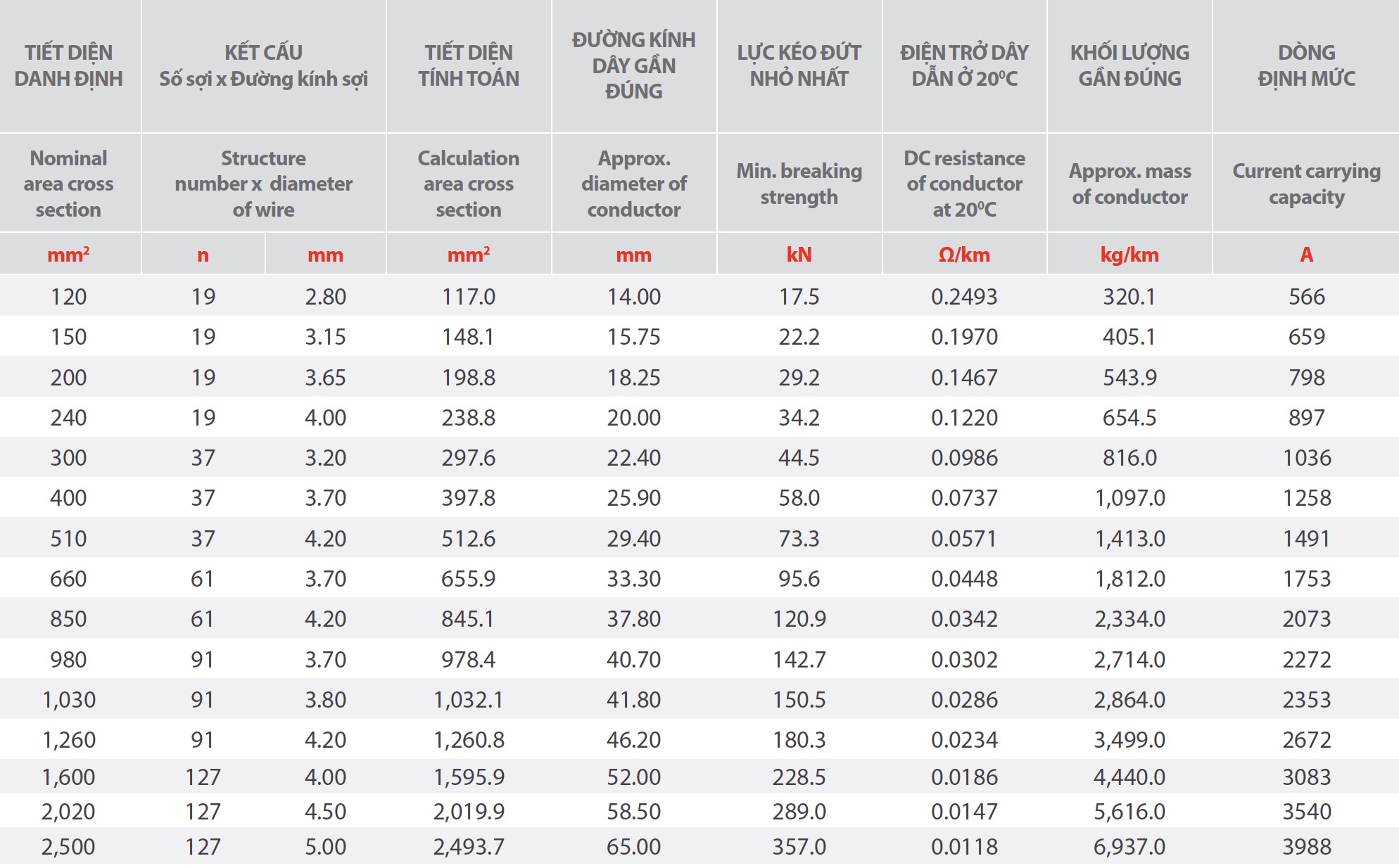- Phần nhôm: Sợi nhôm hợp kim chịu nhiệt (TAL), xoắn đồng tâm