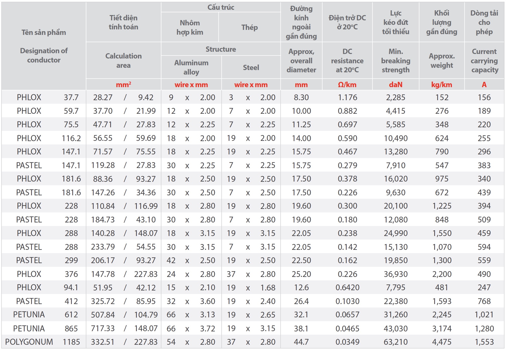 - Phần thép: Một hoặc nhiều sợi thép mạ kẽm, xoắn đồng tâm