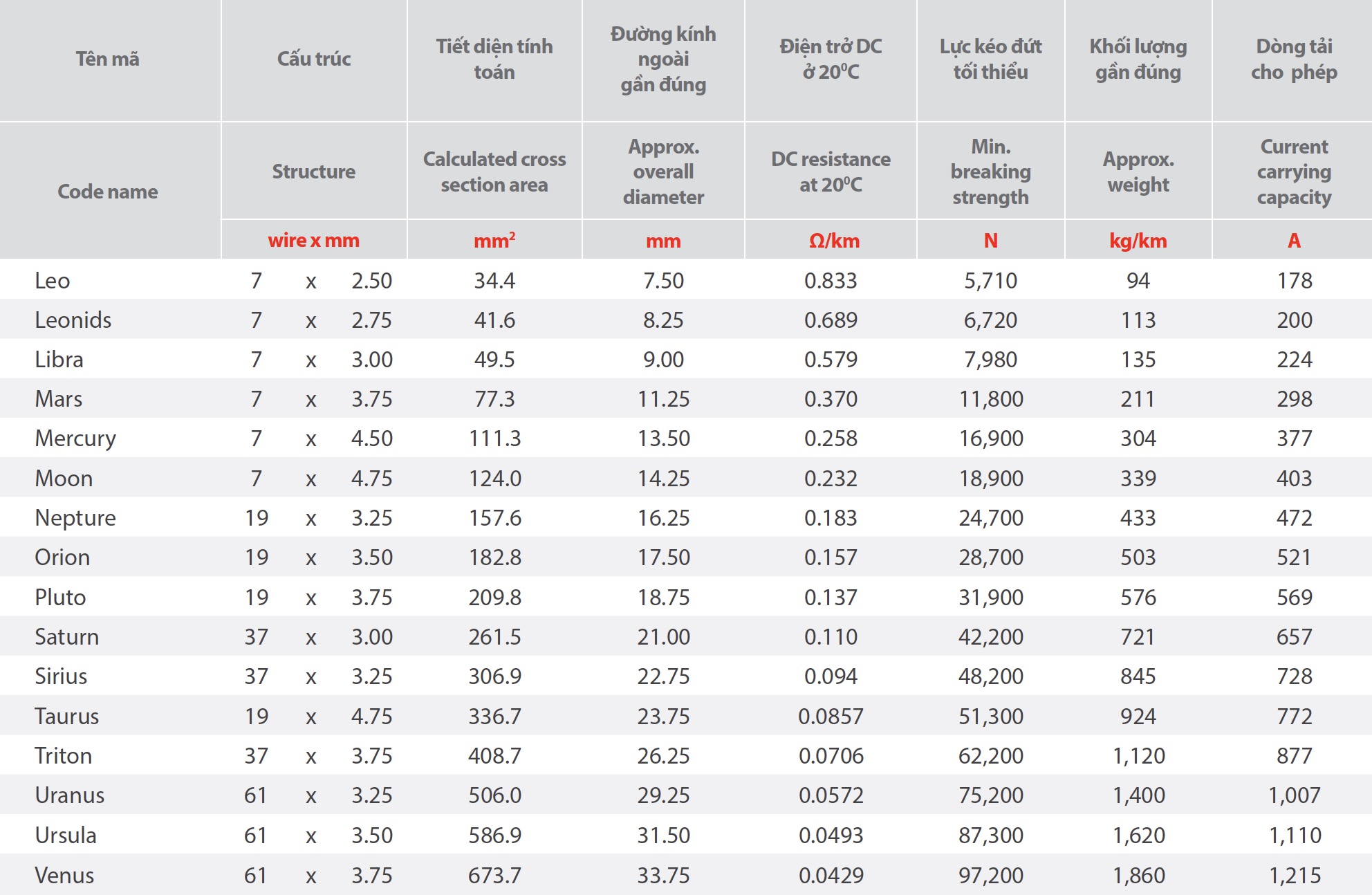 Cấu trúc: Sợi nhôm cứng xoắn đồng tâm