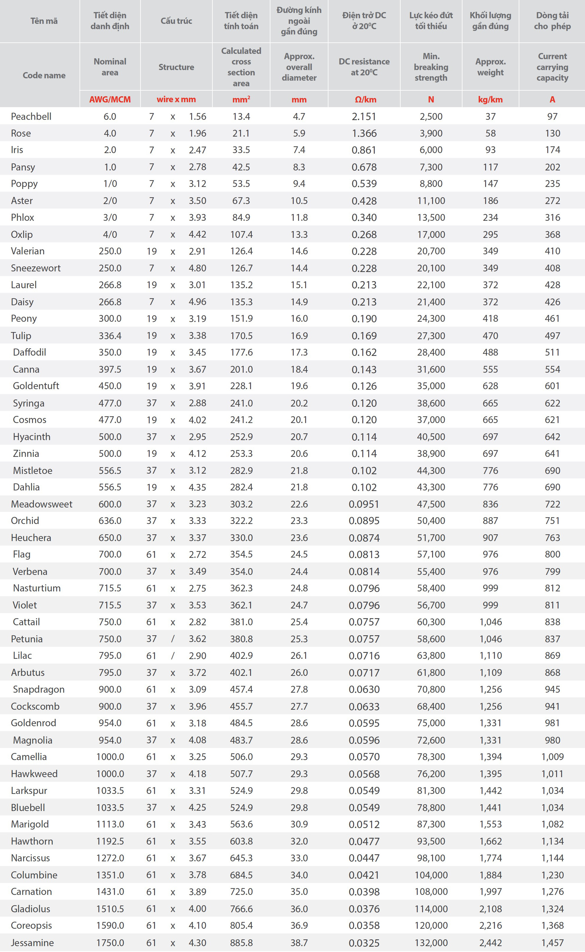 Cấu trúc: Sợi nhôm cứng xoắn đồng tâm